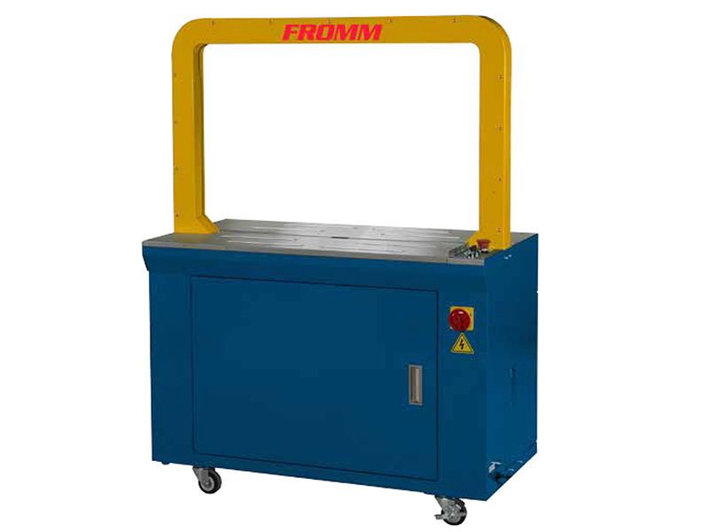FROMM FSM-30是一款简易型全自动PP带打包机,可有效的打牢单箱或多个纸箱。自动PP带打包机FSM-30操作简单,可用脚踏控制开始捆包动作,亦可透过桌面上的启始按钮控制。